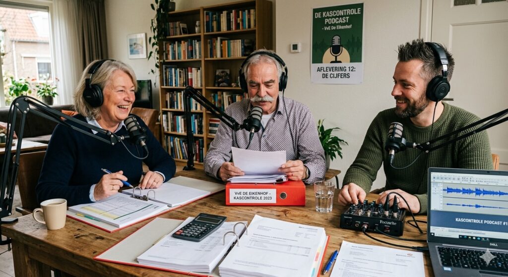 Alleen maar AI: drie mensen die tijdens de kascontrole podcasten, of podcasten over kascontroles … Alles voor de woordspeling.